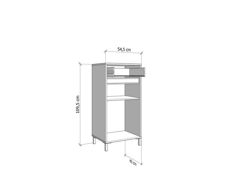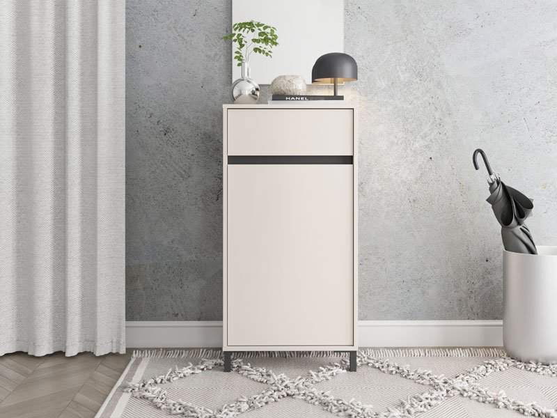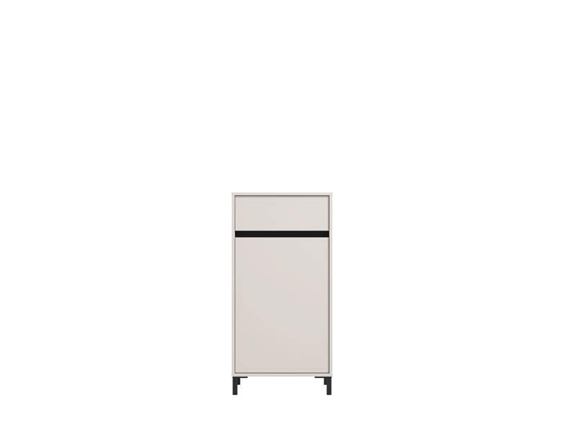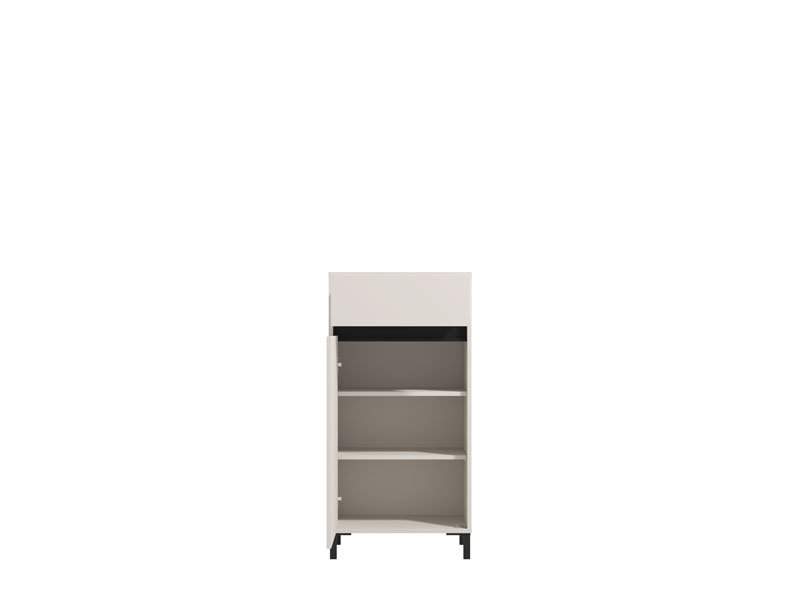 Element predsoblja ARRAN 1K1F, u kašmir dekoru i detaljima izrađenim od crne mat folije, posjeduje praktičan zatvoreni dio za odlaganje obuće koji se sastoji od krila s policama, kao i jednu fioku. Može se kombinovati s drugim elementima kolekcije za predsoblje ARRAN, koji zaokružuju interijersku priču ulaza u vaš dom.