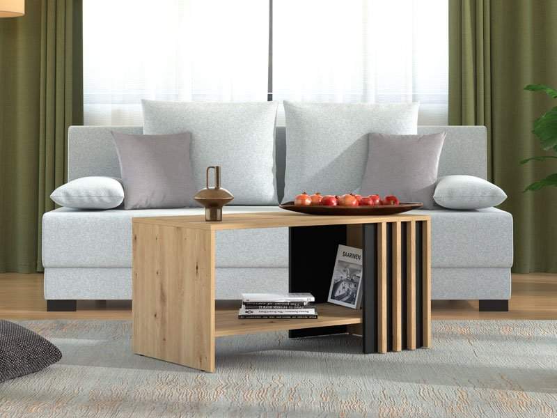 Klub stol LAVAL je funkcionalni dodatak za uređenje dnevnog boravka. Kombinacija dekora artisan hrasta, artisan hrast folije, kao i crnog dekora, donosi u prostor notu elegancije i sofisticirani stilski izraz koji je potreban suvremenim interijerima. Istaknuti kontrastni dekori doprinose naglašavanju atraktivne dizajnerske linije. Dio je istoimenog sistema elemenata za uređenje ambijenta dnevnog boravka, koji predstavlja atraktivno rješenje za sve ljubitelje modernog dizajna interijera.