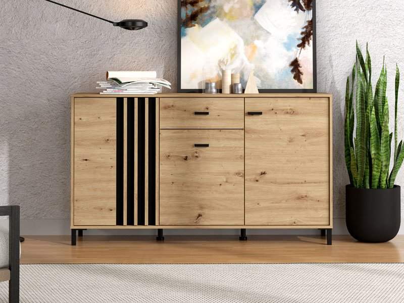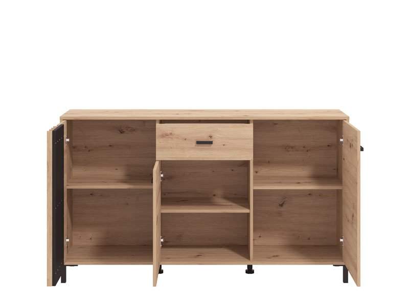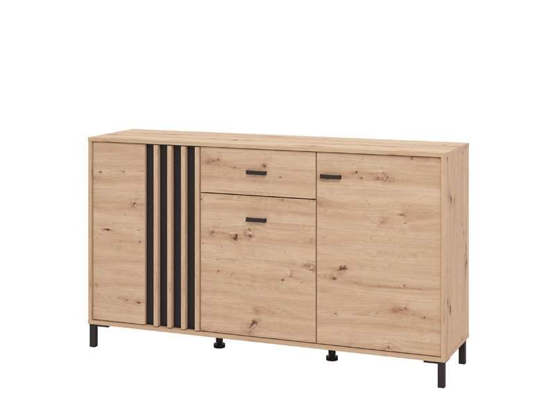 Komoda LAVAL 157 3K1F3V u kombinaciji artisan hrasta, artisan hrast folije, kao i crnog dekora, funkcionalni je komad nameštaja koji je potreban svakom ambijentu doma. Deo je istoimene kolekcije koja će doprinijeti da vaš dom bude opremljen po najnovijim enterijerskim standardima, donoseći u prostor notu elegancije i sofisticirani stilski izraz.