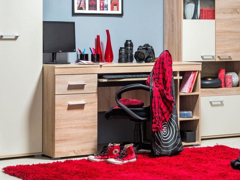 Ozbiljan sto za ozbiljne projekte - sa policom za tastaturu koja se izvlači i fiokom i zatvorenom policom za maksimalnu iskorišćenost prostora za odlaganje. Sa druge strane se nalaze otvorene police za odlaganje diskova i kućišta kompjutera. Kompjuter sto ALFA, u sonoma hrast dezenu, biće idealan gost svake radne sobe.