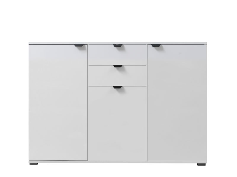 Trokrilna komoda DUERO 3K2F, u opak bijelom dekoru posjeduje dva bočna zatvorena krila sa po tri vertikalne police, kao i centralno pozicioniran segment sa dvije fioke i zatvorenom policom. Zahvaljujući upotrebnom prostoru koji obezbeđuje svrstava se u elemente velike funkcionalnosti. Komoda DUERO 3K2F je pogodna za opremanje predsoblja, dnevne zone ili spavaće sobe.