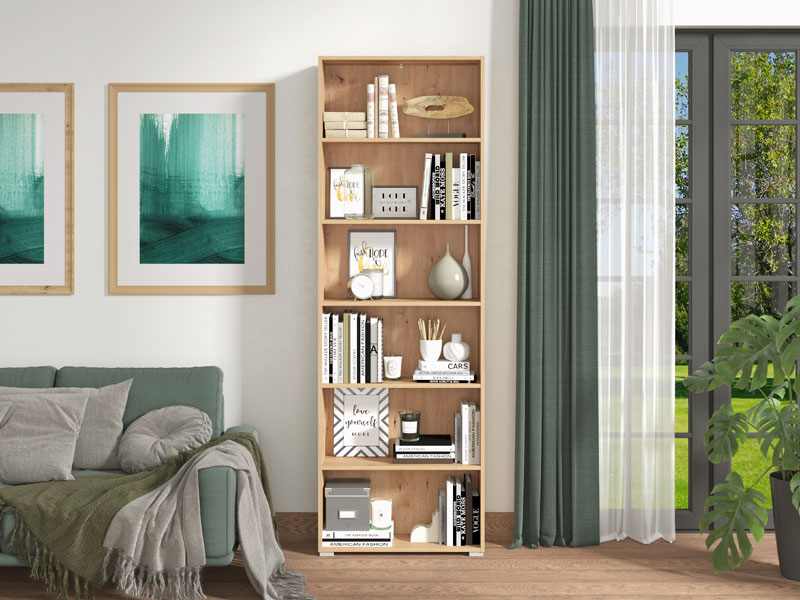 Funkcionalni model otvorene police TOMAR 6, u artisan hrast dekoru, sadrži šest posebnih polica i veoma efektno će se uklopiti u raznim tipovima enterijera.