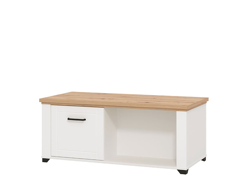 Klub sto VALENCIA M KS u kombinaciji dekora artisan hrasta, opak bijele i bijele mat folije, je dizajnerski privlačno rešenje za uređenje dnevnog boravka, koje daje topliju estetiku enterijeru. Upotrebni prostor čine jedan otvoreni i drugi zatvoreni dio, koji u unutrašnjosti poseduje prostor za odlaganje. Frontovi su obogaćeni crnim ručicama jednostavnog dizajna, a koje su usklađene sa dizajnerskom linijom cijele kolekcije. Pripada istoimenom sistemu elemenata VALENCIA, koji odlikuje funkcionalnost i praktičnost kojoj doprinosi, kako veliki broj elemenata u sistemu, tako i odlična organizacija prostora za odlaganje.