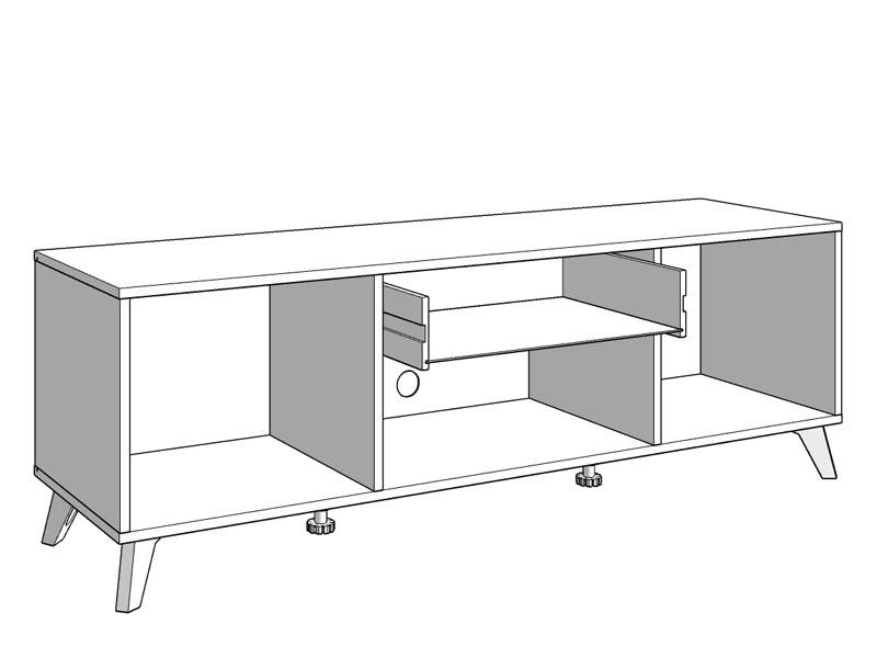 TV polica BRETAGNA TV 150 izrađena je u kombinaciji dekora artisan hrasta sa segmentima u dekoru bijele lak folije, kao i artisan hrast folije, koji unose osvježavajuću estetiku u ambijent. Drvene ručice povezuju dekore u jednu estetsku cjelinu, dok visoki nogari ističu njihovu eleganciju. Dva bočna zatvorena segmenta, praktična fioka, kao i otvorena polica, efektno doprinose funkcionalnoj organizaciji dnevnog boravka.