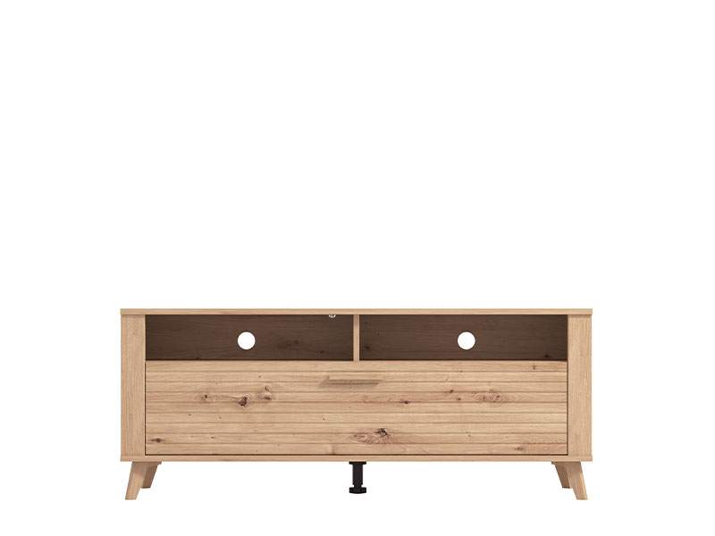 TV polica REDON, u kombinaciji dekora artisan hrasta i artisan hrast folije, može doprinijeti da vaš dom bude opremljen po najnovijim enterijerskim standardima, a vaš TV kutak istaknut atraktivnim komadom namještaja. TV polica REDON posjeduje zatvoren i otvoren segment sa pregradama. Otvoreni segment pogodan je za audio-vizuelnu opremu.