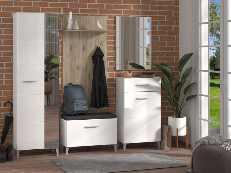 Element predsoblja COMO P2 OG, u opak bijelom dezenu sa frontovima presvučenim bijelom 3D MDF lak folijom sa aplikacijom, dio je istoimene kolekcije koju odlikuje moderan dizajn i funkcionalno organizovan upotrebni prostor. U ovom dvoklrilnom elementu predsoblja sa ogledalom, prostor za odlaganje je praktično organizovan i odlikuju ga garderobna šipka i tri funkcionalne police. Može se kombinovati sa istoimenim elementima koji zaokružuju enterijersku priču ulaza u vaš dom.