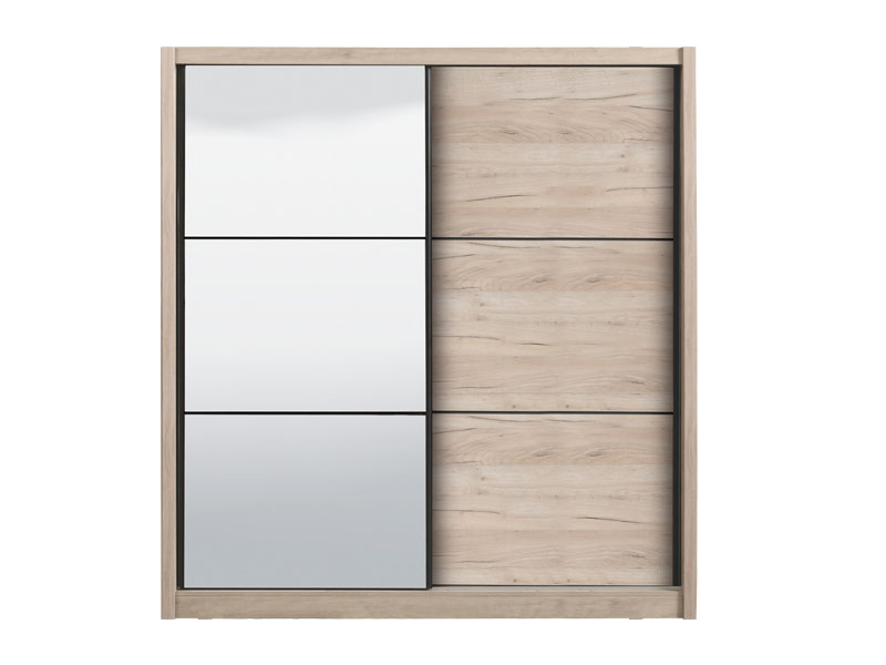 Garderober NAVARA 215 OG u dezenu sivog hrasta je moderno dizajnirano i praktično rješenje za odlaganje. Unutrašnjost se sastoji od segmenta sa policama u lijevom dijelu i prostranog segmenta sa garderobnom šipkom u središnjem i desnom dijelu. Poseban benefit ovog modela je klizni mehanizam koji doprinosi ekonomičnoj organizaciji raspoloživog prostora, kao i ogledalo na lijevom kliznom elementu. Deo je linije NAVARA garderobera, tako da je stilski uklopiv i sa ostalim modelima.