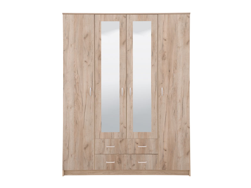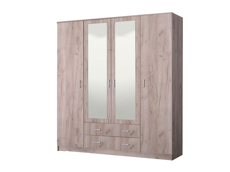 Elegantni model ormara HANA 4K2F2O, u dezenu sivog hrasta, sa garderobnom šipkom u središnjem dijelu, četiri police i dvije fioke, funkcionalno će doprineti organizaciji ambijenta. Ogledala na središnjem dijelu ormara HANA 4K2F2O estetski će oplemeniti životni prostor.