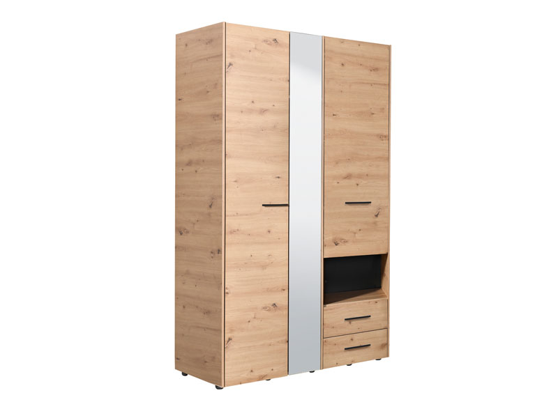 Ormar LEON 3K2FO u dekoru artisan hrasta, sa garderobnom šipkom sa leve, policama i dvije fioke sa desne strane, funkcionalno će doprinijeti organizaciji ambijenta. Ogledalo na središnjem dijelu ormara LEON 3K2FO estetski će oplemeniti i vizuelno povećati ambijent životnog prostora u kome se nalazi.